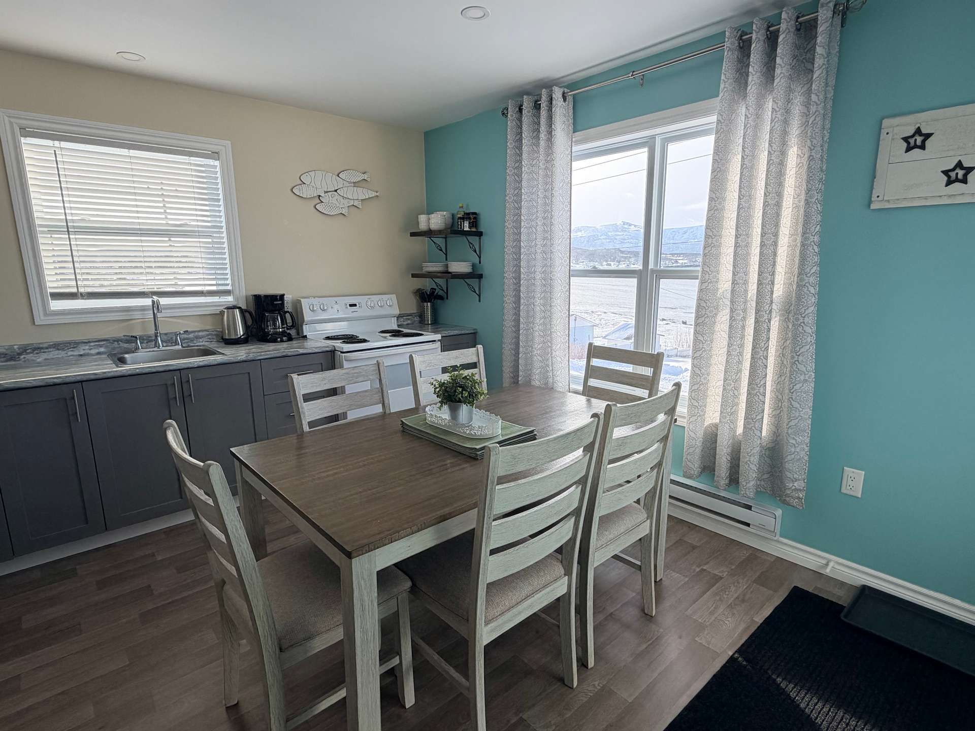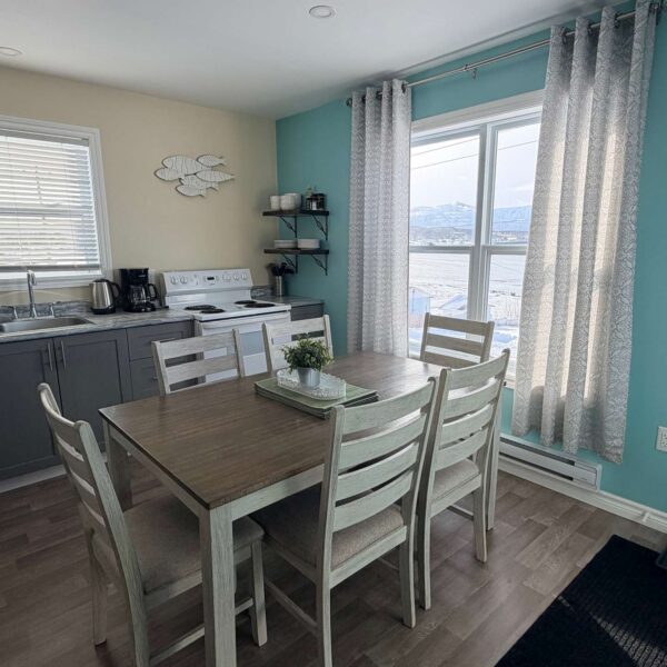 Enjoy a peaceful 3-bedroom getaway with ocean views, a full kitchen, bright living room, and private patio. Family-friendly, beautiful décor, and close to the lighthouse, scenic trails, boat tours, restaurants, craft shops, and the waterfront. A comfortable, home base for relaxing, exploring, and taking in the beauty of Rocky Harbour, Gros Morne National Park. This listing is for the main level, separate from the lower level of the house.