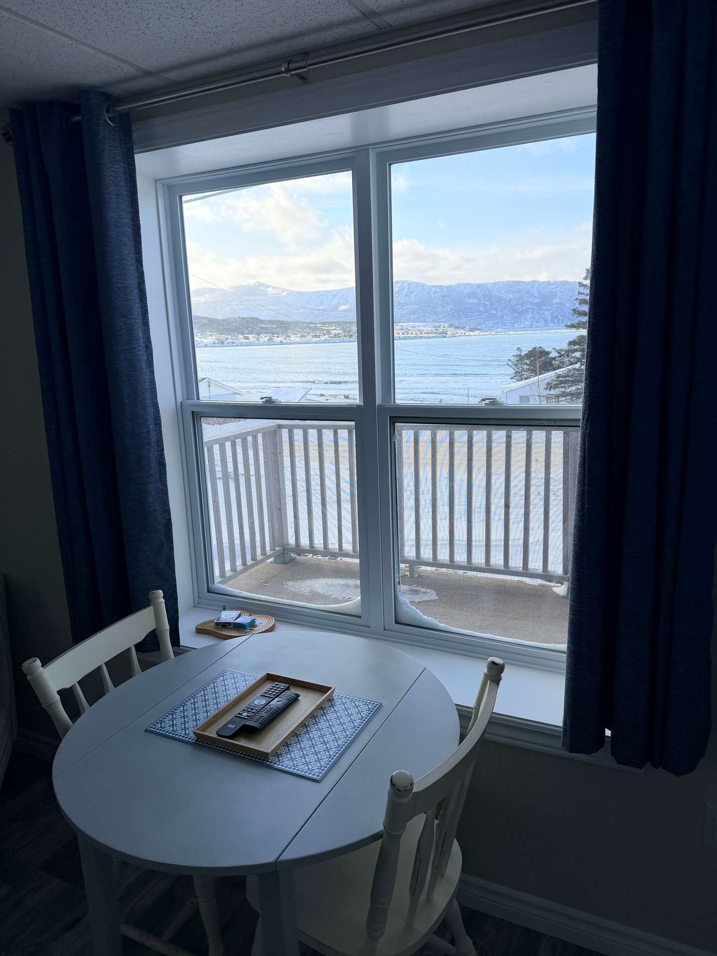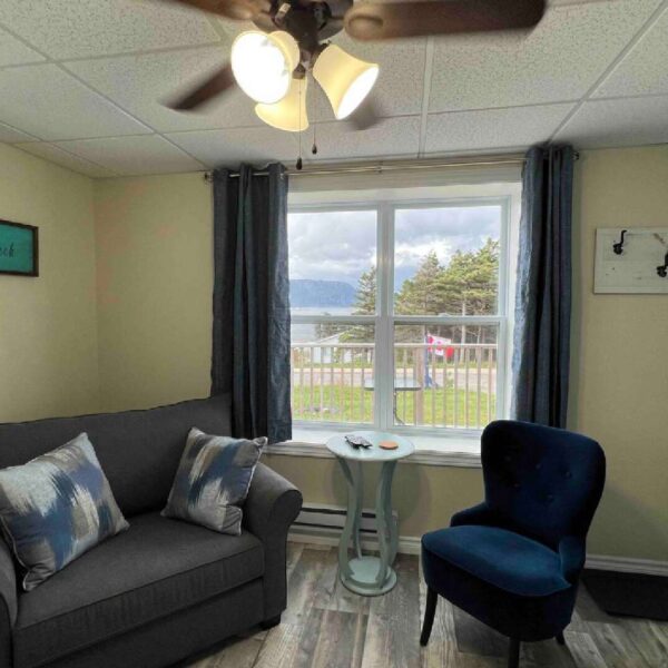 Welcome to Skipper’s Spot! Enjoy a peaceful 1-bedroom getaway with ocean views, kitchenette, bright living room, and private patio. Boasting ocean views, beautiful decor, close to the lighthouse, scenic trails, boat tours, restaurants, craft shops, and the waterfront. A comfortable, home base for relaxing, exploring, and taking in the beauty of Rocky Harbour, Gros Morne National Park. This listing is for the lower level, separate from the upper level of the house. Perfect for couples or solo travellers seeking comfort, stunning ocean views, and a true Newfoundland stay.